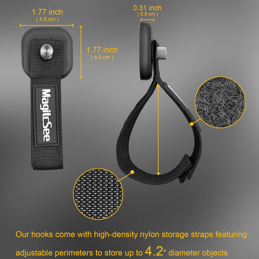Updated 4 Pack Heavy Duty Magnetic Hook Straps for Extention Cords, Powerful Cruise Garage Storage Hook Ties for Hanging Cables, Garden Hoses Ropes, Workshop Tool Box Magnet Organize Hangers for Tools