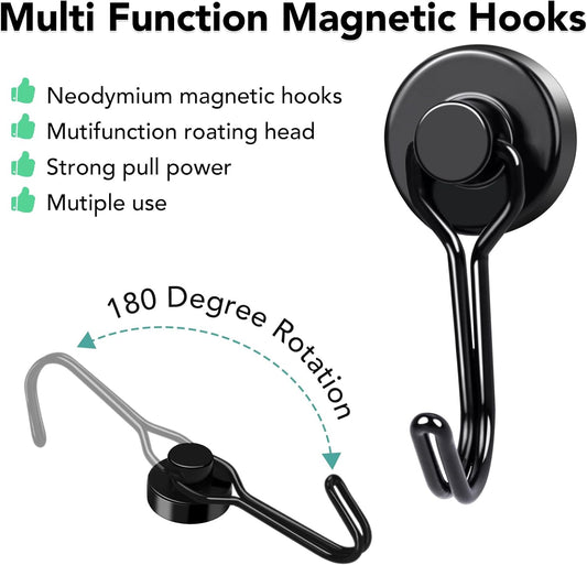 MIKEDE Black Magnetic Hooks Heavy Duty, 60 lb+ Strong Swivel Swing Neodymium Magnetic Hooks for Hanging, Strong Magnet Hanger for Cruise Cabins, Locker, Toolbox, Home, Kitchen - Pack of 10
