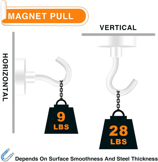 MIKEDE Magnetic Hooks Heavy Duty, 28LB+ Strong Magnetic Hooks for Cruise, Neodymium Earth Magnets with Hook for Hanging, Magnetic Metal Hanger for Fridge, Toolbox, Storage, (White, 4 Pack)
