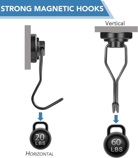 MIKEDE Strong Magnetic Hooks Heavy Duty, 200LBS+ Swivel Neodymium Magnets with Carabiner Hook, Hooks for Hanging, Curtain, Home, Workplace - 4 Pack
