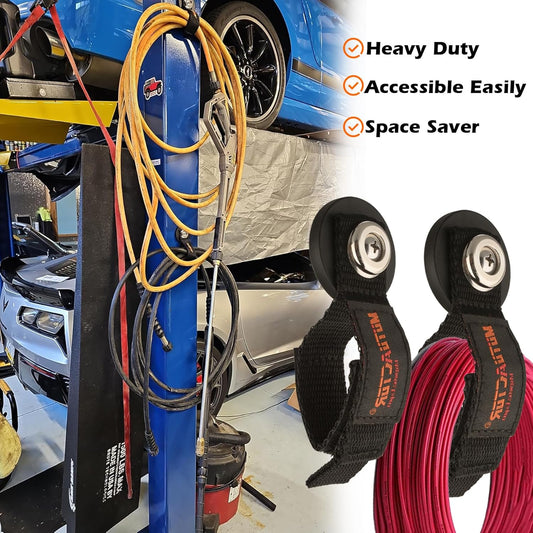 MUTUACTOR 2packs Magnetic Hooks Heavy Duty,Strong Magnet Garage Hook Large Capability for Hanging Cables Rubber Coating Mounting Magnet Storage Hooks for Garden Hoses Ropes Cordless Drills Tools Box