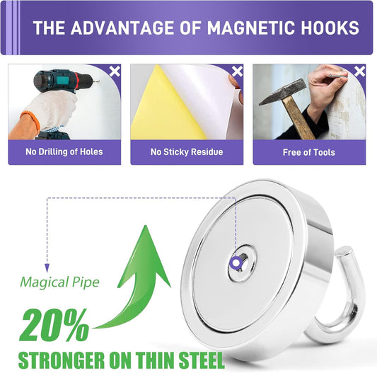 Heavy Duty Magnetic Hook, Magnetic Tool Holder, Magnetic Garage Hooks, Extension Cord Strap for Cable, Rope, Wire Storage in Garage,Workshop,RV,Pick-up(Dia.2.59" Magnet * 4Pcs)