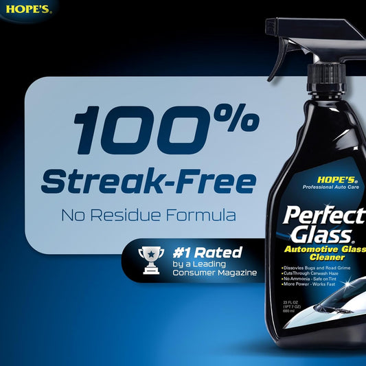 HOPE'S Perfect Glass Automotive Glass Cleaner - Streak-Free, Tint Safe Car Cleaner for Glass, Acrylic, Windows, Mirrors, Windshield - No-Residue - Removes Smudges, Road Grime - 23 Fl Oz, Pack of 1