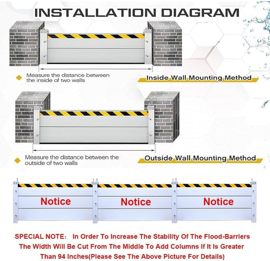 Reusable Heavy Duty Aluminum Flood Barriers for Home Exterior, Flood Protection Barriers Water Barrier Door Quick Detachable Garage Doors Detachable Mobile Rain Water Baffle ( H 31.5 inch L 8FT)