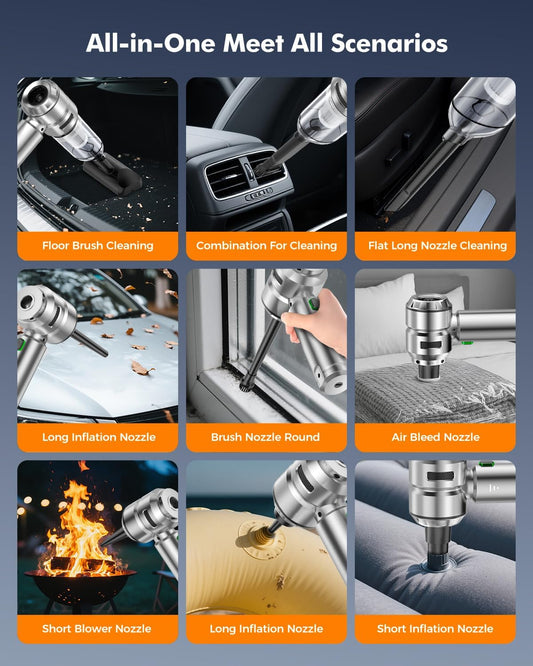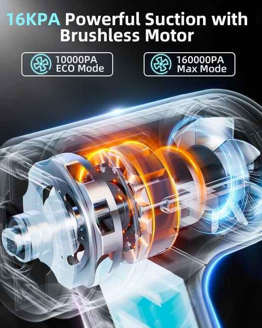 Car Vacuum Cordless Portable with Brushless Motor,16000PA Suction Power, 3-in-1 Compressed Air Duster & Air Blower & Pump Wireless Mini Handheld Cleaner for Home, Car, Pet, Office