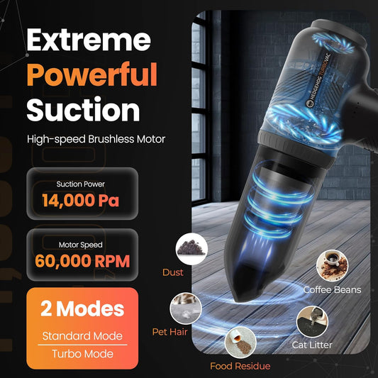 2-in-1 Car Vacuum & Air Duster,70W/16kpa/1200000RPM/35 Mins,High Powerful Dust Cleaner Portable Compressed Air Blower,Lightweight Handheld Mini Vacuum for Car/Home/Office