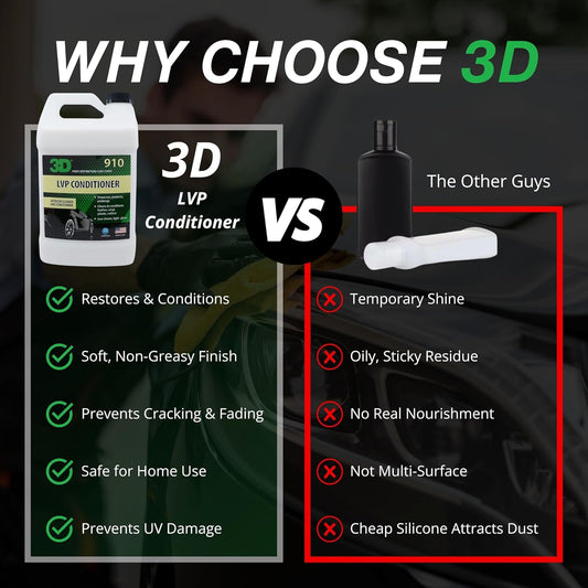 3D Leather, Vinyl & Plastic Conditioner | Restores, Conditions & Protects Car Interiors | Non-Greasy UV Protection for Seats, Steering Wheels, & Trim |1 Gallon
