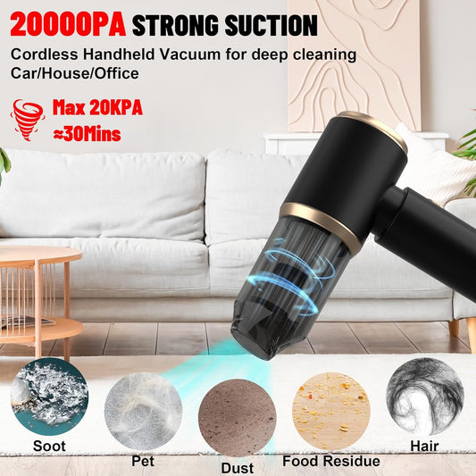 Handheld Car Vacuum Portable Cordless, 20000PA High Power 4 in 1 Vacuum Cleaner & Air Duster & Air Blower with 4000mAh Brushless Motor and Multi-Nozzles for Car (20000 PA-Black)