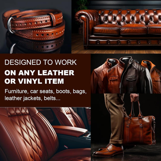 Leather Color Restorer, Leather Recoloring Balm, Scratch Remover, Leather Dye, Leather Paint, Leather Repair Kit for Furniture Couches Car Seats Shoes Bags, Medium Brown
