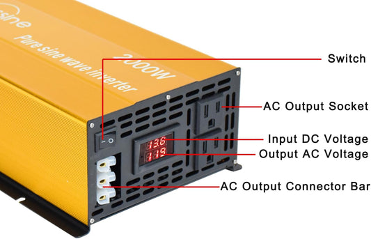 2000W Pure Sine Wave Inverter-36V DC to 110V 120V AC Power Converter with 2 AC Outlets, 36 Volt Power Inverter for Truck, Rv, Camping, Home, Emergency Power