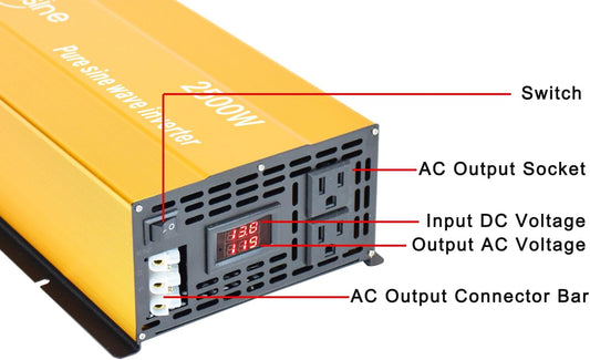 2500W Pure Sine Wave Inverter-36V DC to 110V 120V AC Power Converter with 2 AC Outlets, 36 Volt Power Inverter for Truck, Rv, Camping, Home, Emergency Power