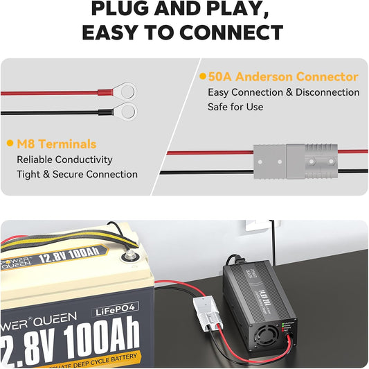 Power Queen 14.6V 20A LiFePO4 Battery Charger, 2-Stage Automatic Smart Battery Charger and Maintenance, LiFePO4 Lithium Batteries Charger, Suitable for 12V (12.8V) Lipo Lithium Iron Phosphate Battery
