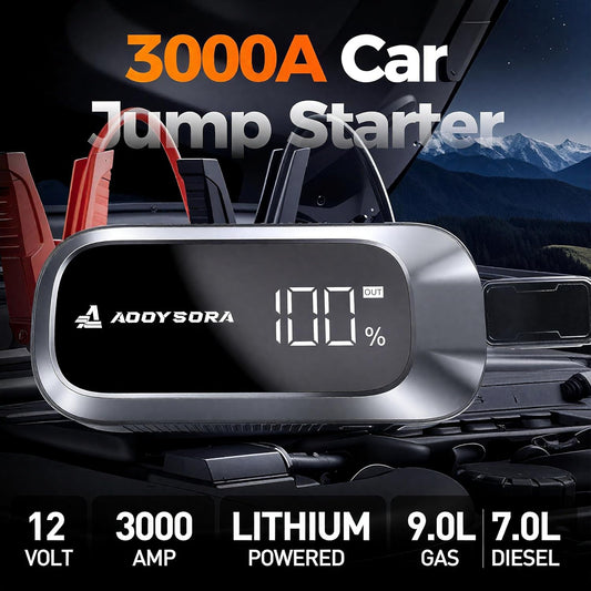 3000A Car Battery Jump Starter,16000mAh Jump Starter Battery Pack Up to 9.0L Gas & 7.0L Diesel, 12V Portable Car Jump Starter with LED Screen/3 Modes Flashlight/Jumper Cable