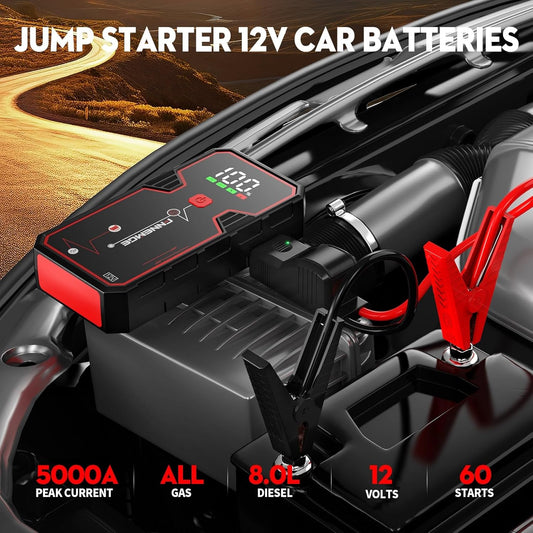 Car Jump Starter, 5000A Peak 23800mAh 12V Jump Starter Battery Pack(Up to All Gas, 8.0L Diesel Engine),with USB Charge Output Port,LED Light,HD Large Screen.
