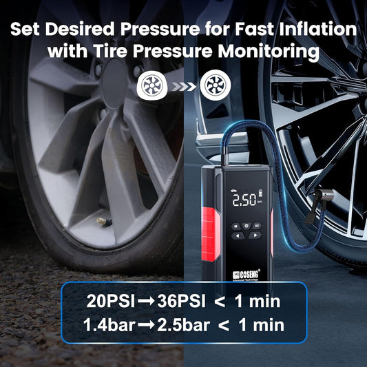 J26 Portable Car Jump Starter with Air Compressor, 3500A 12V Car Battery Booster (All Gas & up to 6.0L Diesel Engines), 150PSI Tire Inflator, Smart Jumper Cables, 3-Mode Emergency Flashlight