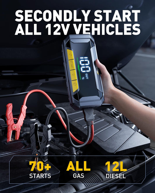 OXILAM Jump Starter 6000A for All Gas/12L Diesel, Car Battery Jumper Starter Portable, 12V Lithium Jump Box with Jumper Cables, LED Display, LED Light, Power Bank with USB, Type C Port