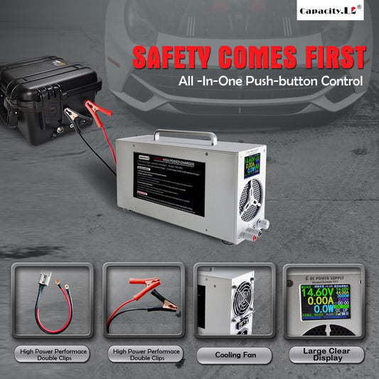 High Power Battery Charger, 0-120V Upgraded Design LifePO4 Battery Charger, One Click Control Adjustable Current/Voltage for LiFePO4 Lithium Iron Rechargeable Battery((0-25A)