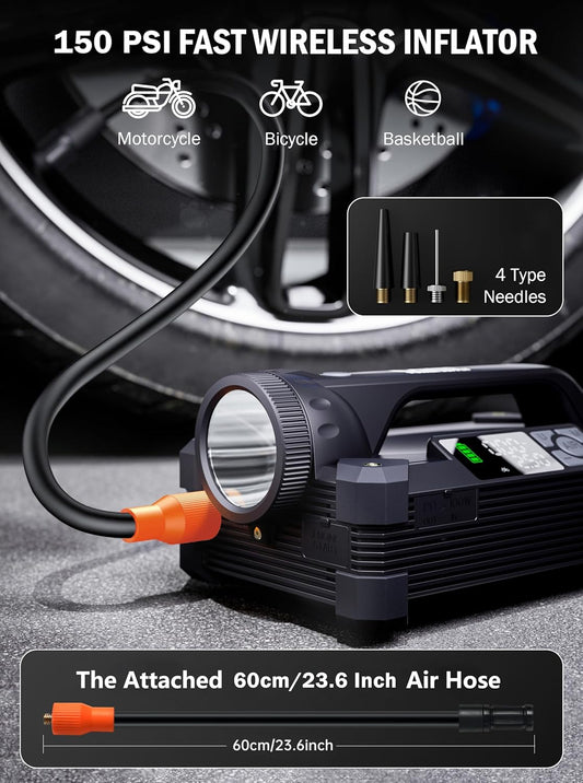 Jump Starter with Air Compressor, 3000A 160PSI Car Battery Jump Starter for 9.0L Gas & 8.0L Diesel Engines, 12V Portable Car Jumper with LCD Display & 4-Mode LED Flashlight
