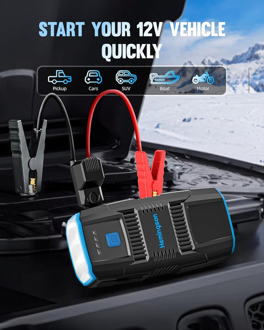 Car Jump Starter, HEMINGSON 2000A Peak Battery Jump Starter Portable 12V Jump Box for Vehicles 7.0L Gas and 5.5L Diesel Engines with 4 Modes LED Lights and Jumper Cable
