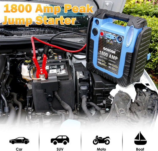 1800 Amp Jump Starter with Air Compressor, acetek Car Battery Jump Starter 260 PSI Tire Inflator, 20000 mAh 12V Auto Lead-Acid Battery Booster (Up to 6L Gas or 6L Diesel Engine) with LED Light & USB