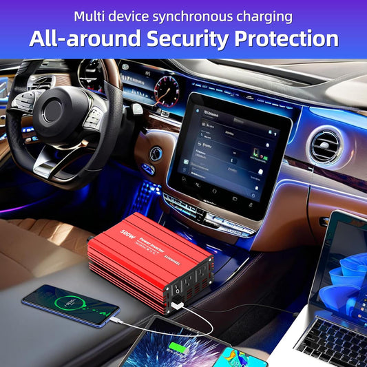 500W Power Inverter, Car/Light Truck 12V DC to 110V AC Converter USB and 3.0A USB and Type-C Ports Car Charger Inverter with Cigarette Lighter Ports for Smartphones Laptops Tablets
