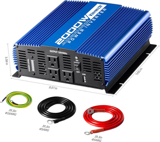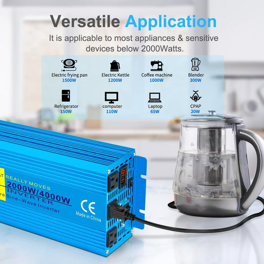 2000W Pure Sine Wave Inverter 12V DC to 110V AC Power Inverter for Home/Truck/RV/Camping/Boat/Off Grid Solar System Car Inverter with 3AC Outlets, 1 USB Port and APP Remote Control