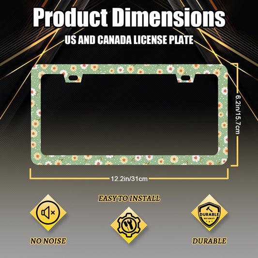 Cute Daisy Floral License Plate Frame Beautiful Flowers License Plate Holder for Personalized Car Decorative Stainless Steel Colorful License Plate Daisy Auto Part with Screws 12.2" x 6.2"