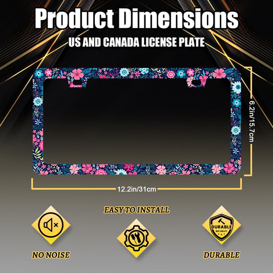 Colorful Flowers License Plate Frame Beautiful Floral Flower License Plate Holder for Women Car Decorative Stainless Steel Cute License Plate Flowers Auto Parts with Screws 12.2"x 6.2"