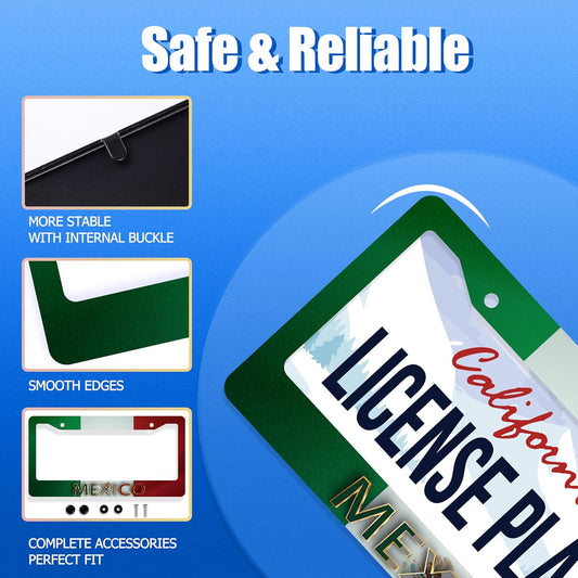 Mexico Flag License Plate Frame Personalise Mexican Funny License Plate Stainless Steel Flag License Plate Holder Car Accessory with Screws Car Decoration 12.3" x 6.3" for Men Women