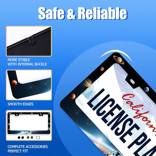 Planets License Plate Frame Funny Beautiful Space License Plate Stainless Steel Colorful License Plate Holder Galaxy Car Accessory with Screws Car Decoration 12.3" x 6.3"for Men Women
