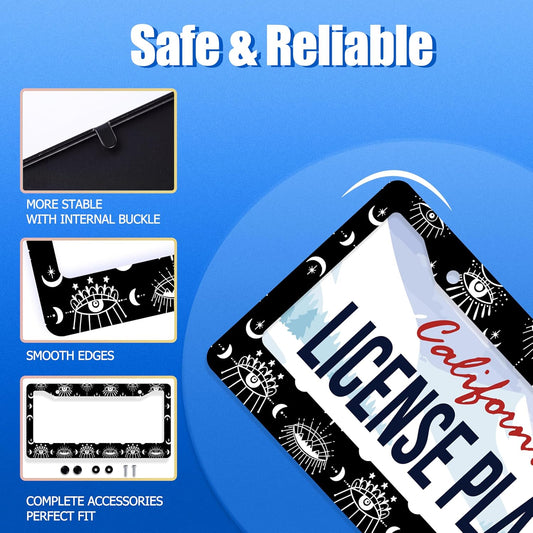 Evil Eye License Plate Frame Psychedelic Eye License Plate Stainless Steel Funny License Plate Holder Colorful Car Accessory Car Decoration 12.3" x 6.3" Fits Standard Vehicles Size