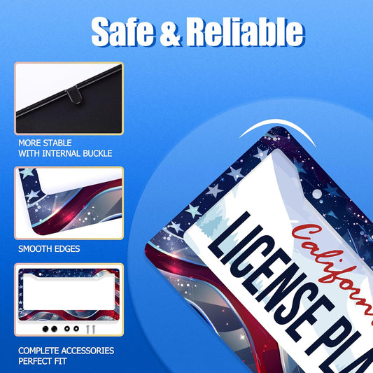 Personalised License Plate Frame American Flag USA License Plate Stainless Steel Funny License Plate Holder Patriotic Car Accessories Decoration 12.3" x 6.3" for Men Women