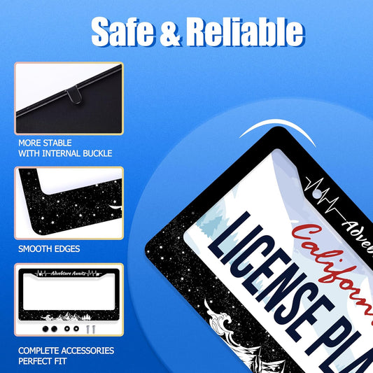 Advebture Awaits License Plate Frame Mountain Waves Forest License Plate Stainless Steel Rust-Proof Metal Funny License Plate Holder Car Accessory With Screws Car Decoration 12.3" x 6.3" For Men Women
