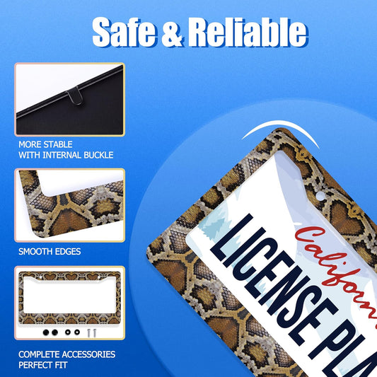 Snake Printed License Plate Frame Animal Skin Texture License Plate Stainless Steel Funny License Plate Holder Colorful Car Accessory with Screws Car Decoration 12.3" x 6.3" Men Women