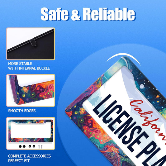 Abstract Galaxy License Plate Frame Starry Sky License Plate Stainless Steel Funny License Plate Holder for Men Women Colorful Car Accessories Decoration 12.3" x 6.3"