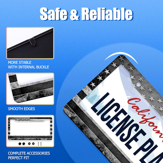 Vintage American Flag License Plate Frame USA Flag License Plate Stainless Steel Funny License Plate Holder Patriotic Car Accessories With Screws Car Decoration 12.3" x 6.3"Fits Standard Vehicles Size