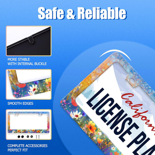 Abstract Floral License Plate Frame Watercolor Flowers License Plate Stainless Steel Funny License Plate Holder for Women Colorful Car Accessories Decoration 12.3" x 6.3"