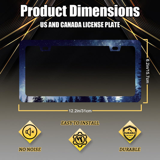Beautiful Galaxy License Plate Frame Starry Sky Galaxy Forest License Plate Holder for Personalized Car Decorative Stainless Steel Colorful License Plate Galaxy Auto Part 12.2" x 6.2"