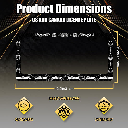 Horse License Plate Frame Horseshoe License Plate Holder for Front and Rear Car Tags Stainless Steel Auto Parts Animal Funny License Plate for Men Women Decoration with Screws 12" x 6" s