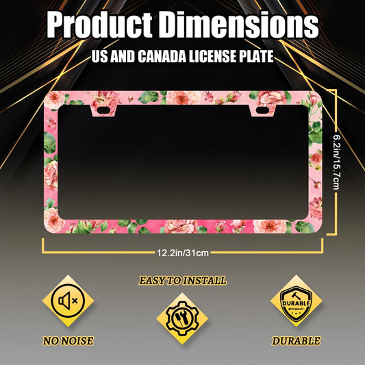 Watercolor Roses License Plate Frame Pink Floral Flower License Plate Holder for Women Car Decorative Stainless Steel Colorful License Plate Flowers Auto Parts with Screws 12.2" x 6.2"
