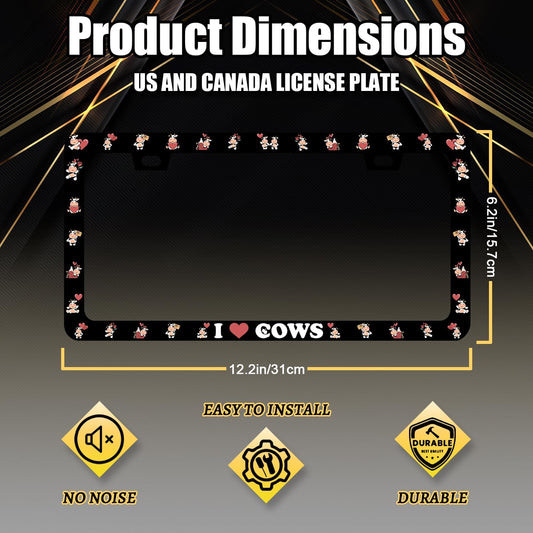 Cow License Plate Frame Cute I Love Cows License Plate Holder for Personalized Colorful Animal Car Decorative Stainless Steel Funny License Plate Cows Auto Part with Screws 12.2" x6.2"