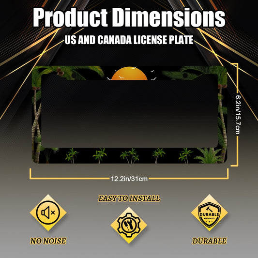 Palm Trees Sunset License Plate Frame Tropical Plants License Plate Holder Stainless Steel Front and Rear Car Tags Auto Parts Colorful License Plate Men Women Decoration with Screws 12.2" x6.2"