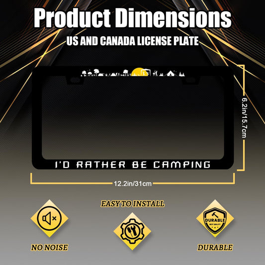 I'd Rather be Camping License Plate Frame Funny Camper License Plate Holder for Personalized Mountain Car Decorative Stainless Steel License Plate Camp Auto Part with Screws 12.2" x 6.2"