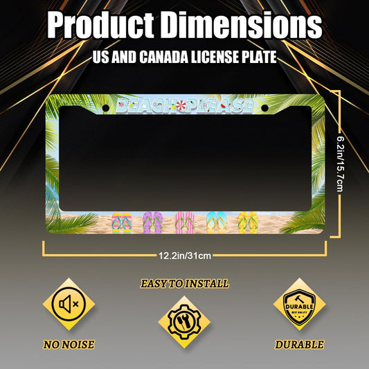 Beach Please License Plate Frame Hawaii Flip Flops License Plate Stainless Steel Auto Parts Funny License Plate Holder Men Women Decoration with Screw License Plate Holder 12"x6"