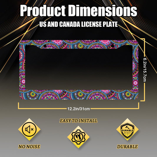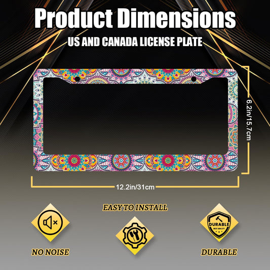 Mandala Hippie License Plate Frame Boho Print License Plate Holder Stainless Steel Front and Rear Car Tags Auto Parts Funny License Plate Decoration with Screws for Men Women s 12.2"x 6.2"