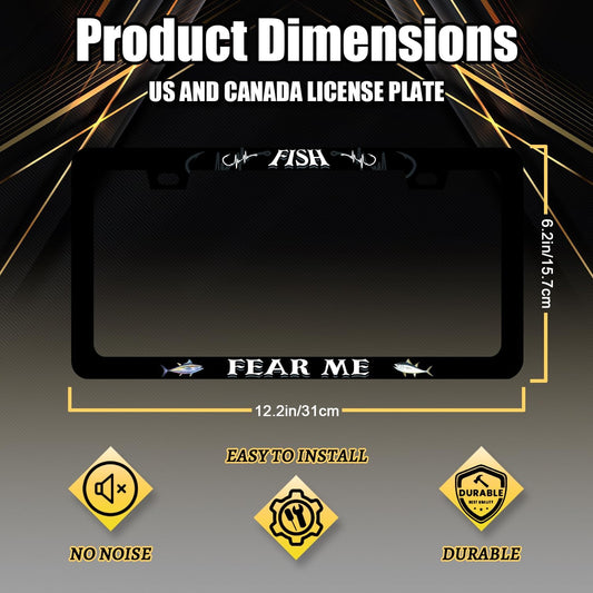 Fish License Plate Frame Fish Fear Me License Plate Holder for Personalized Car Decorative Stainless Steel Funny Text License Plate Fishing Auto Part Women Men with Screws 12.2" x 6.2"