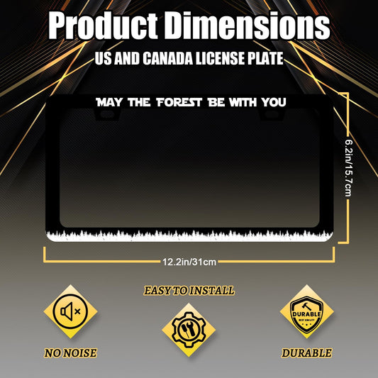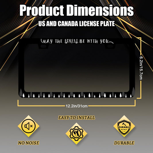 Funny License Plate Frame May The Forest Be with You License Plate Holder for Personalized Text Car Decorative Stainless Steel Forest License Plate Auto Part with Screws 12.2" x 6.2"