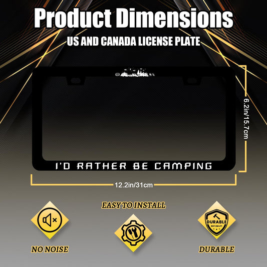 I'd Rather be Camping License Plate Frame Mountain Camper License Plate Holder for Personalized Car Decorative Stainless Steel Funny License Plate Camp Auto Part with Screw 12.2"x6.2"