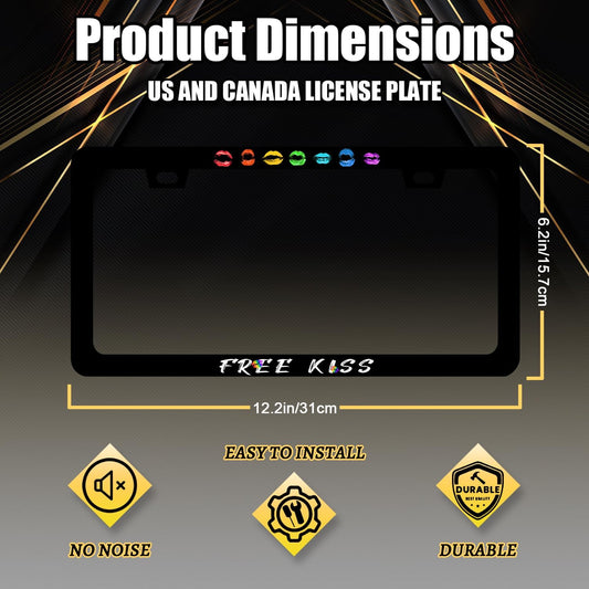Sexy Lips License Plate Frame Colorful Kiss License Plate Holder for Personalized Car Decorative Stainless Steel Funny Text License Plate Lip Auto Part with Screws 12.2" x 6.2"