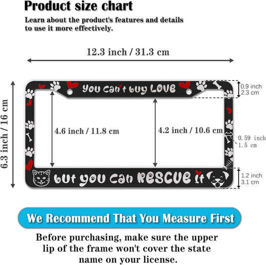 License Plate Frame Black and White Front License Plate Bracket You Can’t Buy Love, but You Can Rescue It Aluminum Metal Car Accessory 2 Pack with Screw Covers Set